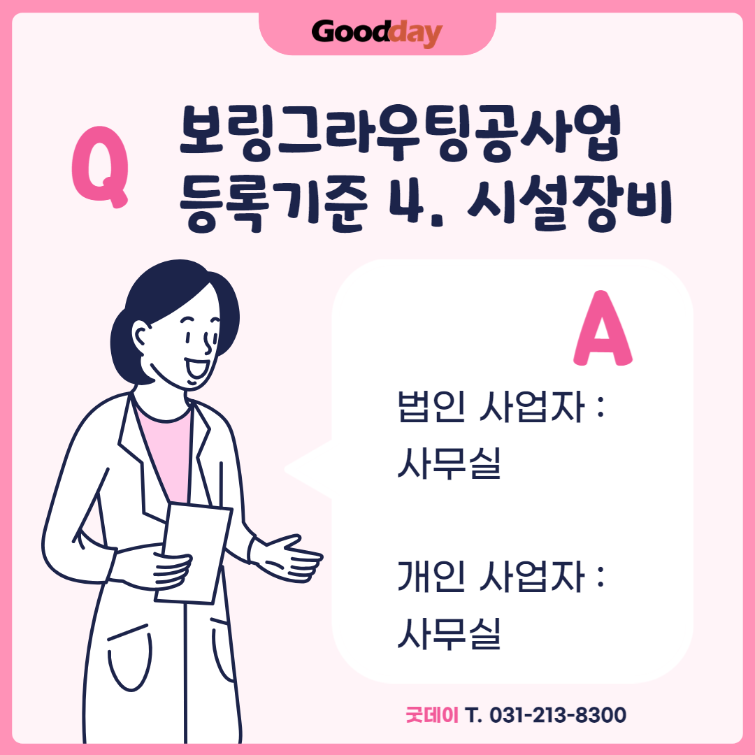 보링그라우팅파일공사 면허 발급을 위해서는 시설장비를 충족해야 합니다.