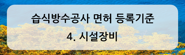 도장습식방수석공사업 습식방수공사 면허 등록기준 4. 시설장비